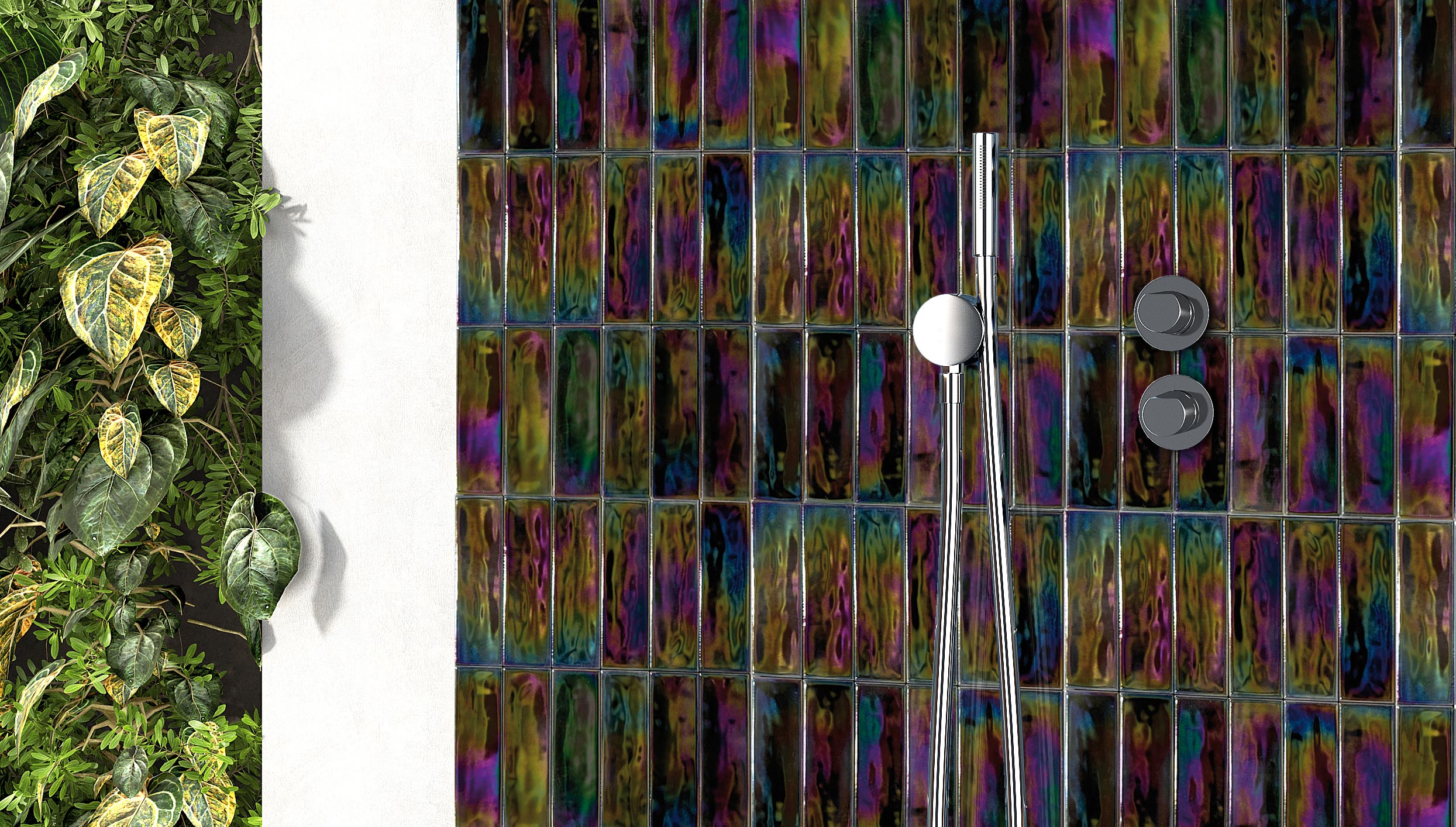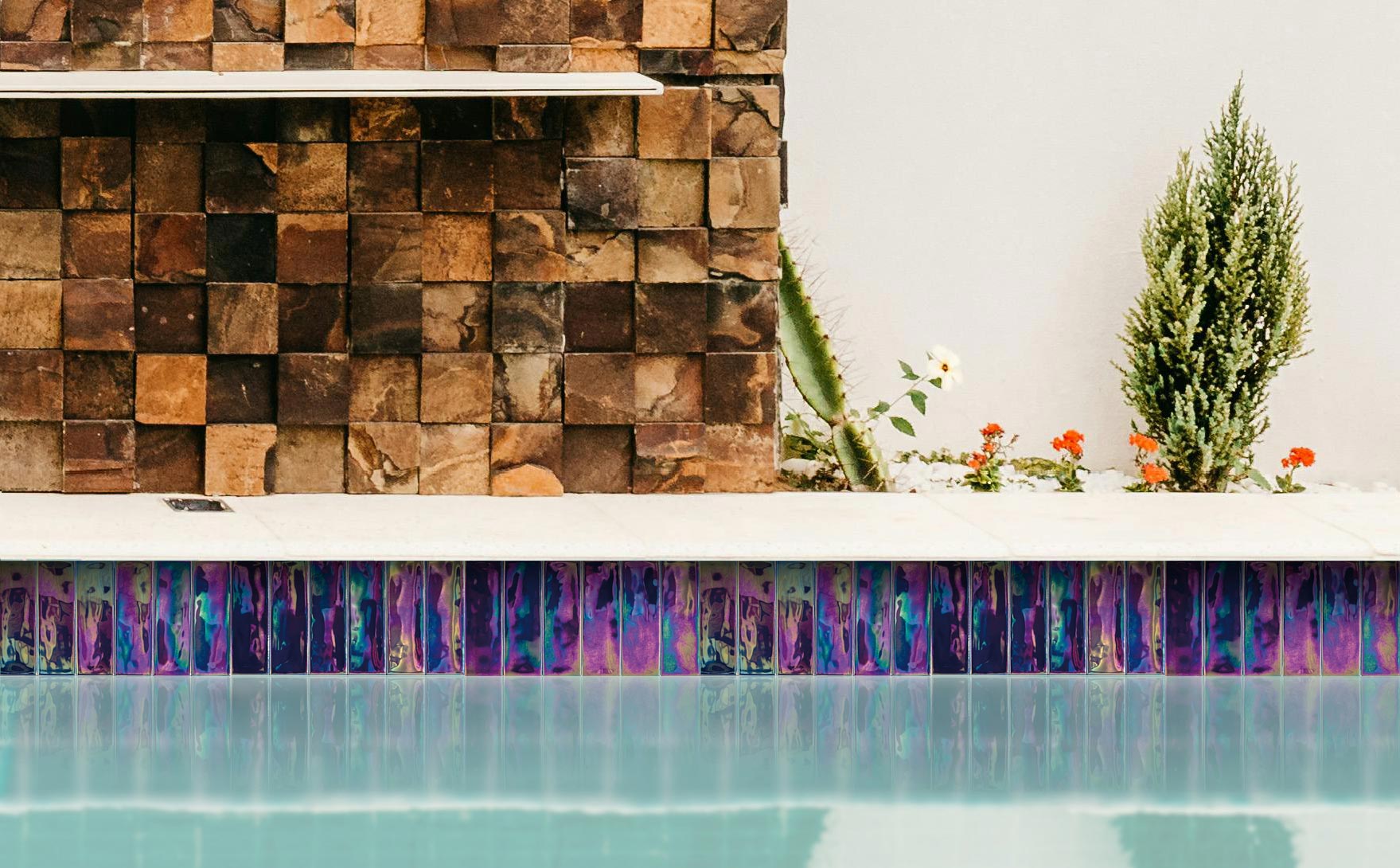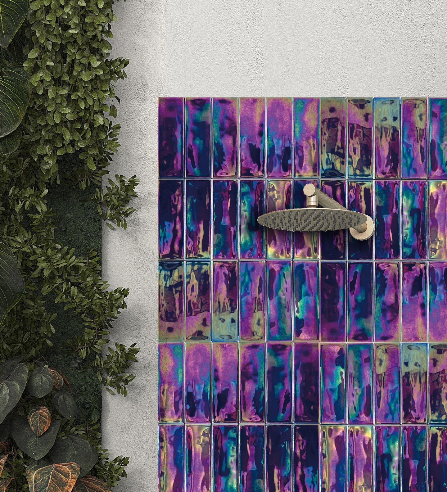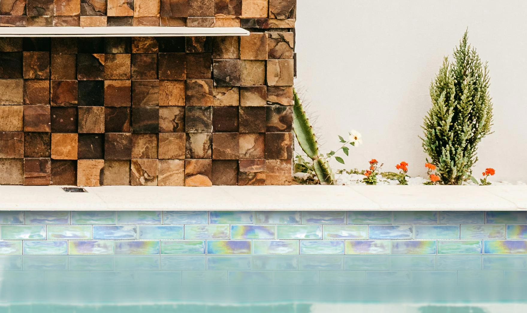 Iris transforms the appearance of surfaces, presenting finishes with vibrant colors that interact with light and the environment, achieving a unique combination of shades that change throughout the day or depending on the incidence and intensity of the light. Live spaces, in constant evolution, offer a unique decorating experience. Iris can be used indoors, outdoors, in pools, and wet areas.